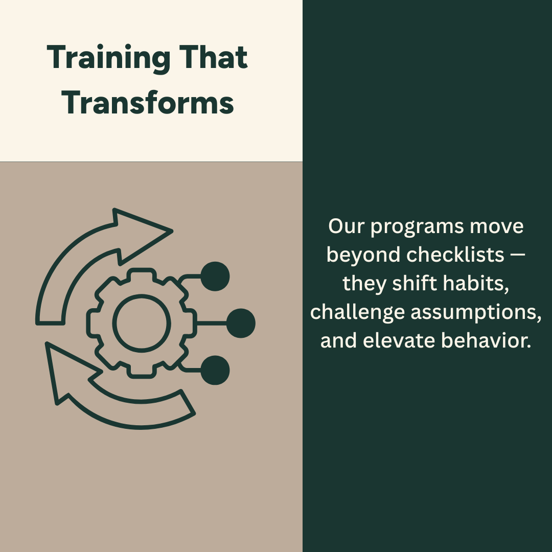 We focus on three key sectors to ensure those who need it most gain access to training that fosters real, long-term impact. Our proprietary training tools fill gap between technical know-how and professional effectiveness — enhancing workplace culture, productivity, and career growth.